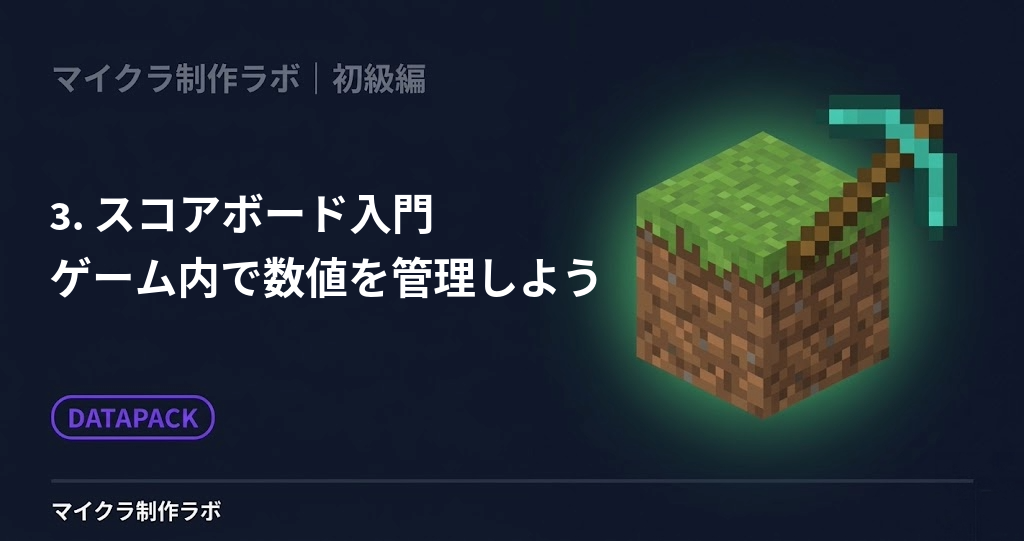 この記事では、前回作ったウェルカムDatapackの execute if score をさらに深掘りします。スコアの範囲チェックに加え、複数条件を同時に満たすときだけ処理を走らせる「AND条件の書き方」と、2つのスコアを比べる「スコア同士の比較」を身につけましょう... -