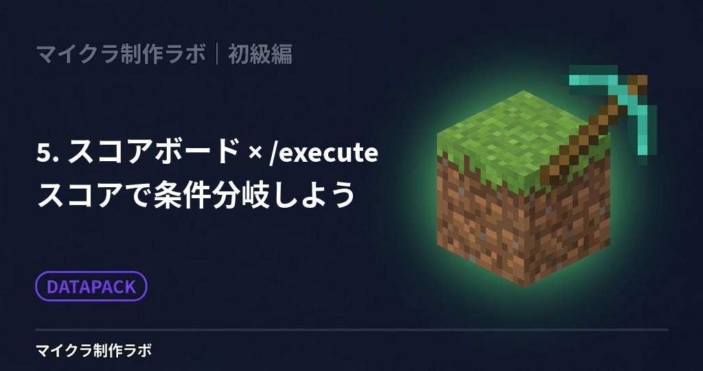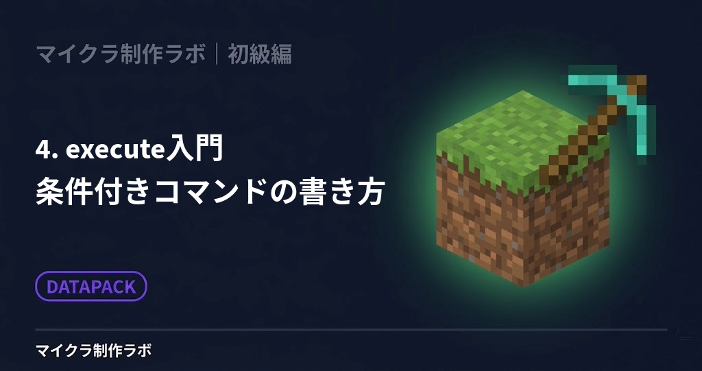 この記事では、前回作ったスコアボード付きDatapackを大幅に改善しながら、Datapack制作の鬼門である /execute コマンドを基本から解説します。これまで「全プレイヤー対象」で処理していたウェルカム演出を、tick.json と組み合わせた「参加を検知してそ...