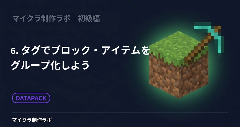 Minecraftのコマンドを書いていると、「原木系のブロックならどれでもOK」「鉱石系のアイテムをまとめてレシピに使いたい」という場面に出くわします。そんなときに役立つのが「タグ(Tag)」です。この記事では、バニラが用意しているタグの確認方法から... -