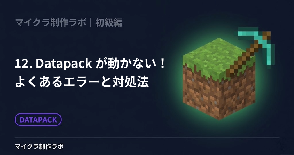 「Datapackを作ったのに、ゲームに反映されない」「コマンドが動かない」——そんな経験はありませんか?この記事では、Datapack初心者が最初にぶつかるよくあるエラーとその対処法を、原因から丁寧に解説します。エラーを自力で読み解けるようになると、制... -
